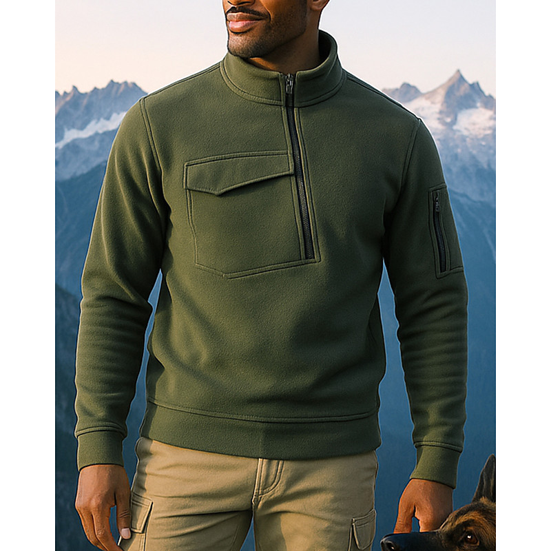 Men's Fleece Sweatshirt Winter Coat Long Sleeve Stand Collar Top Outdoor Thermal Warm Winter Polyester Black Army Green Grey Traveling Running