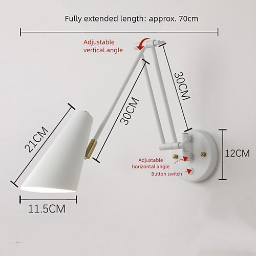 Lampada da parete vintage industriale con braccio oscillante, interruttore dimmerabile, regolabile, braccio lungo dorato, lampada da lettura da parete, lampada da parete per testiera da camera da
