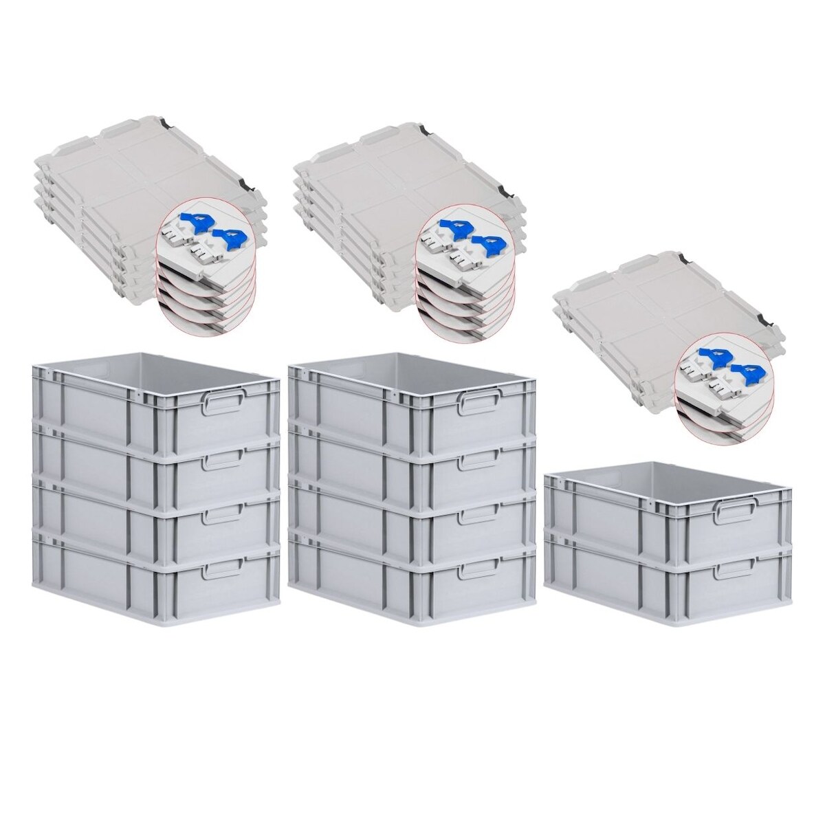 PROREGAL 10x Eurobox NextGen Grip mit Scharnierdeckel & blauen Verschlüssen | HxBxT 17x40x60cm | 34 Liter | Griffe geschlossen | Glatter Boden