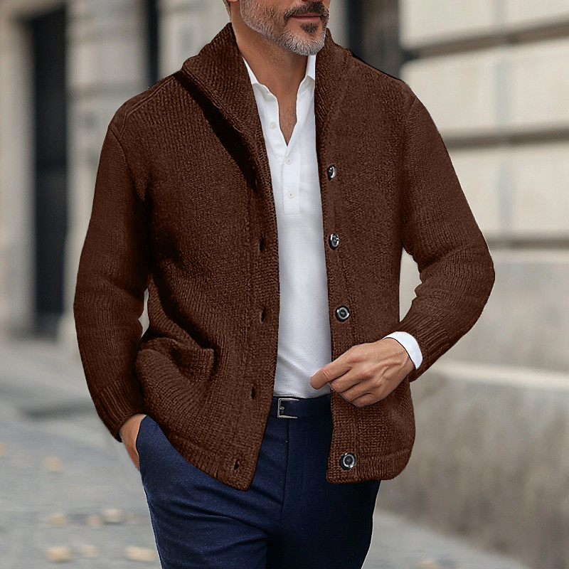 Men's Cardigan Sweater Cropped Sweater Knit Sweater Ribbed Knit Regular Button Up Plain Shawl Collar Warm Ups Modern Contemporary Casual Daily Wear Clothing Apparel Fall Winter Black Blue M L XL