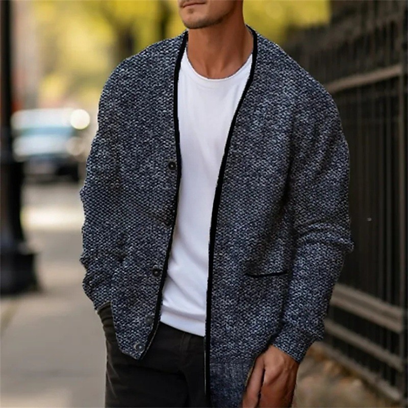 Men's Jacquard Sweater Sweater Cardigan Sweater Ribbed Knit Regular Tops Knitted Plain V Neck Vacation Fashion Casual Daily Wear Clothing Apparel Spring Fall Fall Winter Navy Blue Light Grey M L