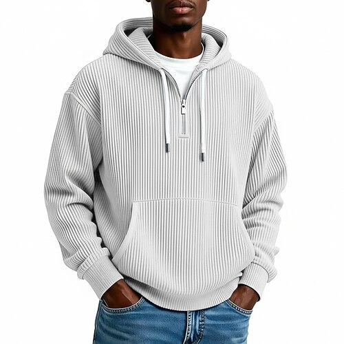 Per uomo Felpa con cappuccio Velluto a coste Maglione Felpa con cappuccio e zip corta Aalbicocca Bianco Viola Verde Grigio chiaro Con Cappuccio Semplice Tasca a marsupio Testurizzato Casuale