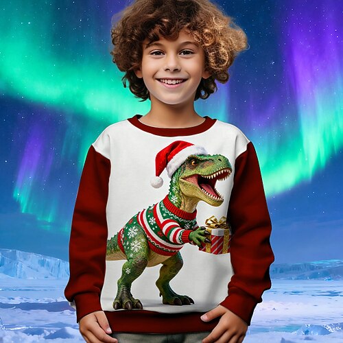 Weihnachten Jungen 3D Dinosaurier Sweatshirt Langarm Frühling Herbst Mode Basic Kinder 4-12 Jahre Rundhalsausschnitt Outdoor Lässig Täglich Normale Passform