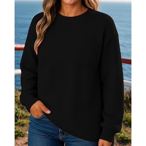 Per donna Felpa pullover Top casual Manica Lunga Top Athleisure Autunno Tinta unita Di tendenza All'aperto Viaggio abbigliamento sportivo Abbigliamento sportivo Nero Bianco Blu Reale