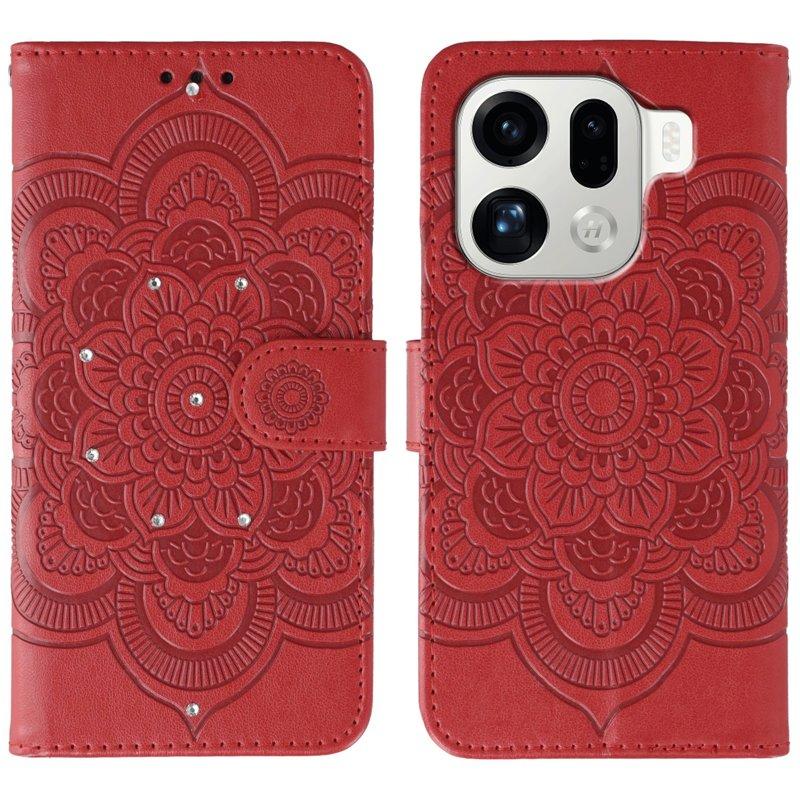 Oppo Find X9 Pro 5G Plånboksfodral Konstläder Mandala Mönster - Röd