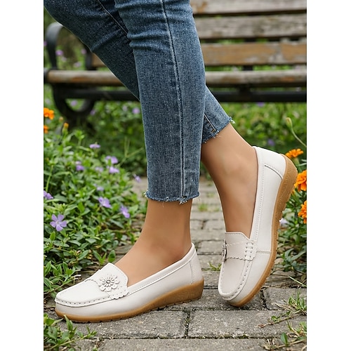 mocassini comodi gialli da donna – scarpe da passeggio casual in similpelle con dettagli floreali, per lavoro, shopping, viaggi e uso quotidiano
