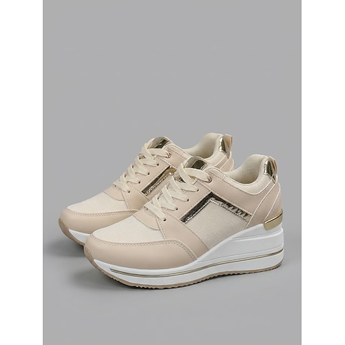 sneakers con plateau beige da donna - scarpe da passeggio ammortizzate e rialzate per viaggi, shopping, abbigliamento quotidiano e outfit urbani