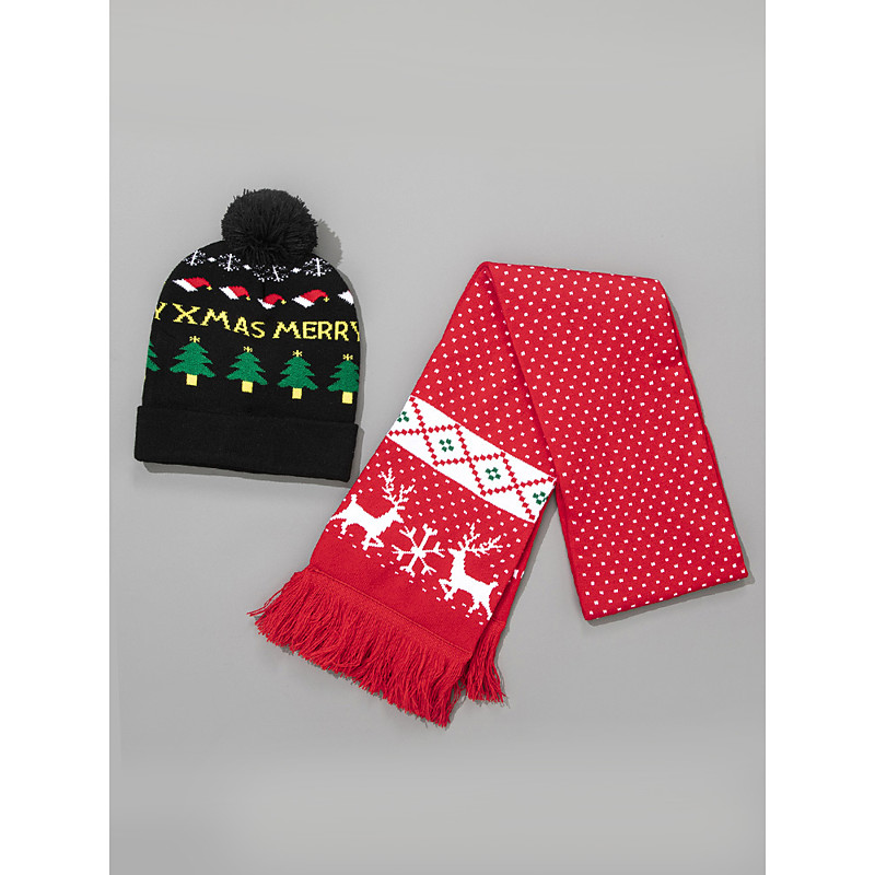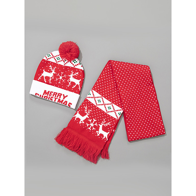 Women's Christmas Knit Hat and Scarf Set, Reindeer Design, Multiple Patterns, Cozy and Festive for Holiday Parties and Winter Wear