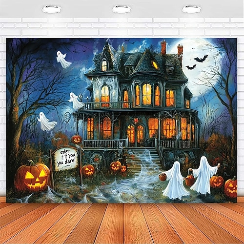 Arazzo di Halloween con castello infestato, sfondo da parete con zucca spettrale, fantasma, pipistrello, cimitero, grande tenda da appendere, decorazione murale horror gotico per camera da letto, soggiorno e casa