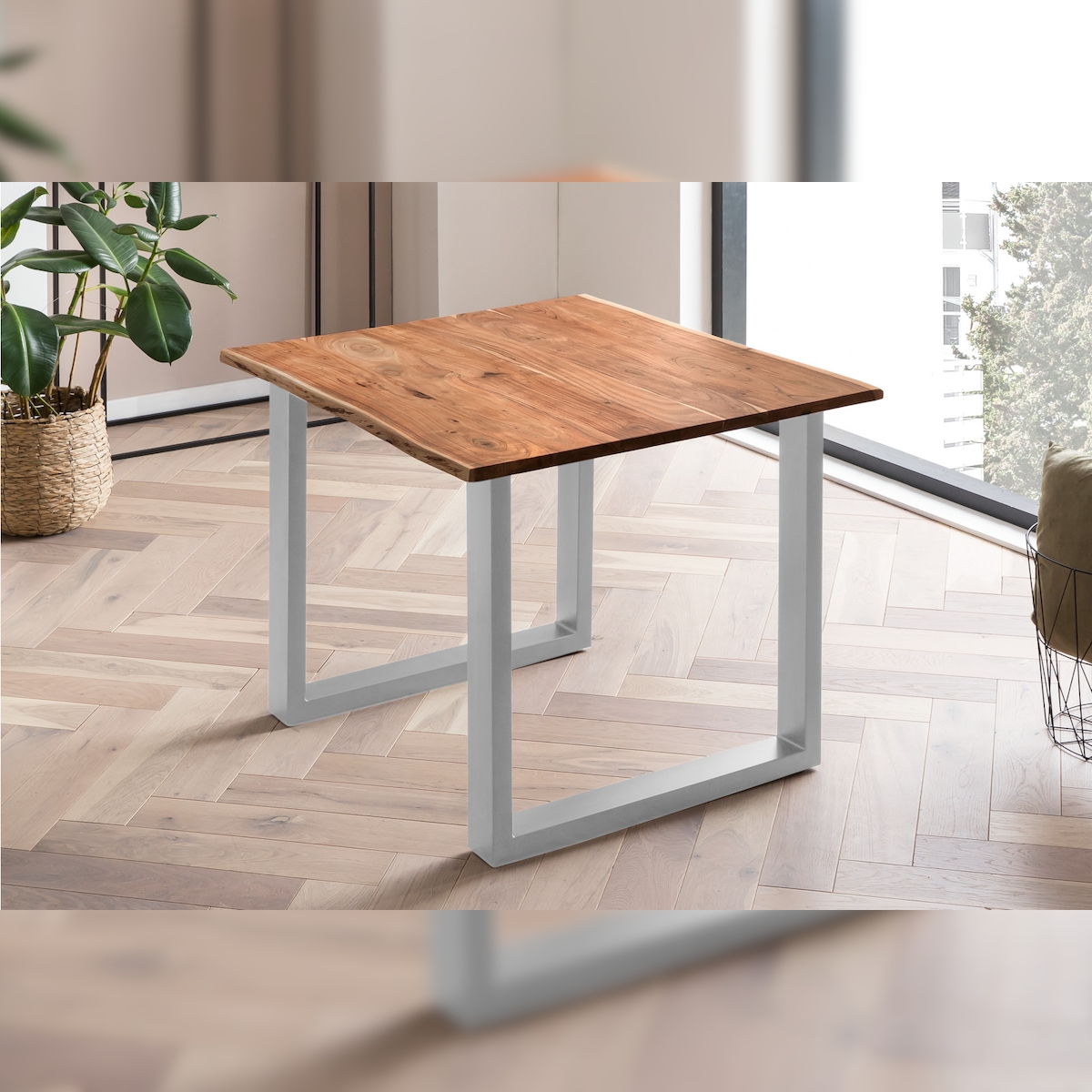 Möbelliebling Esstisch Baumkante massiv Akazie nussbaum 80 x 80 silber QUINN