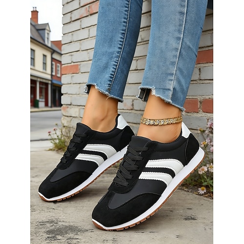 Grüne Schnür-Sneaker für Damen – lässige Sneaker im Retro-Stil mit weißen Kontrastdetails zum Spazierengehen, für die Schule und tägliche Besorgungen