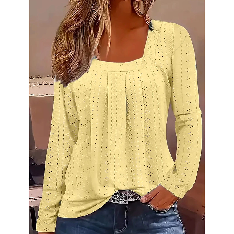 Women's Shirt Lace Shirt Solid Color Graphic Plain Elegant Vintage Stylish Long Sleeve Square Neck Regular Tops Daily Going out Vacation Wear Print White Yellow Rose Pink Light Blue Spring Fall