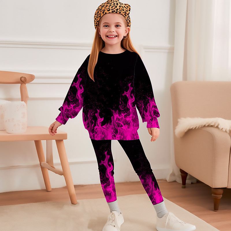 Girls' 3D Graphic Sports Suit Tracksuits Sweatshirt Legging Set Long Sleeve Spring Fall Daily Casual Tights Kids 4-12 Years Crew Neck Outdoor Vacation Sports Tailored Fit