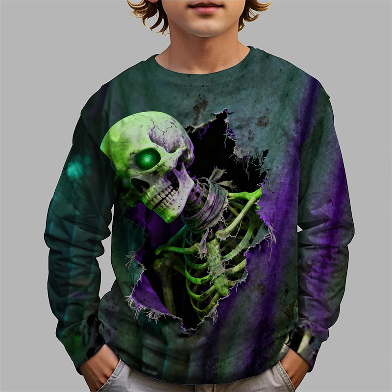 Halloween Boys' 3D Skull T shirt Tee Long Sleeve Spring Fall Fashion Basic Kids 4-12 Years Crew Neck Outdoor Casual Daily Regular Fit