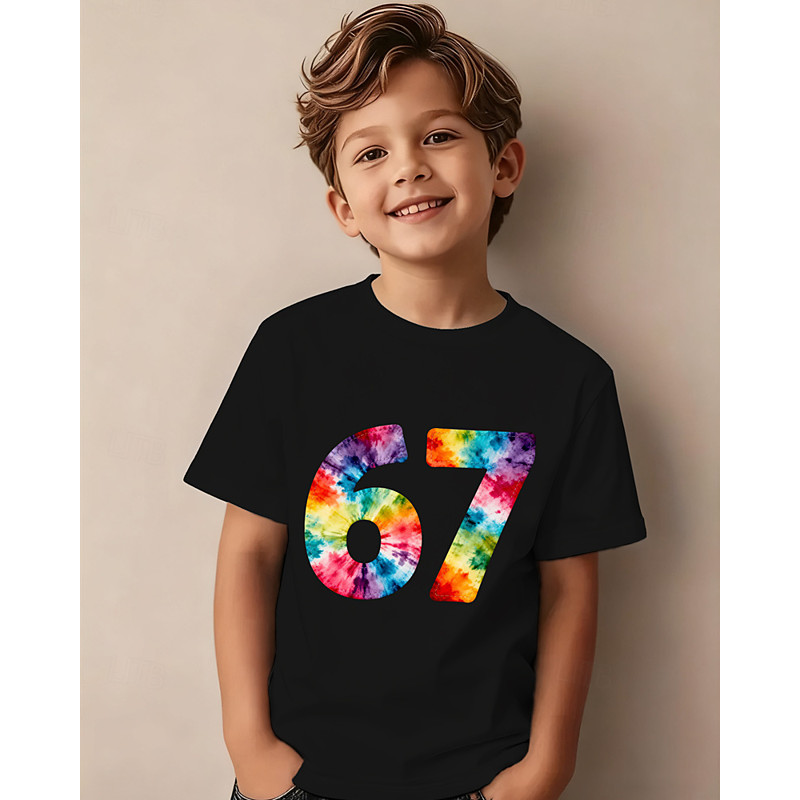 Cotton Kids Boys' Black Graphic Funny Slang 67 T shirt Blouse Crew Neck Short Sleeve Outdoor Dailywear Fashion Streetwear Designer Printing Summer