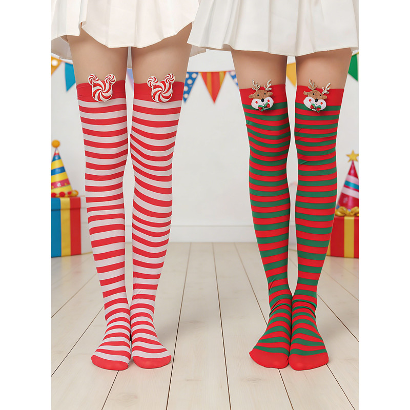 Women's Over-the-Knee Carnival Socks, Striped Bow Thigh-High Stockings, Stretchy Soft Fabric, Festive Costume Style, for Adults Teens, Perfect for Carnival Parades, Costume Parties Festival Celebr