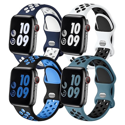4 pezzi Cinturino Sportivo Chiusura moderna Ciclo sportivo Compatibile con Cinturino dell'Apple Watch 38mm 40mm 41mm 42mm 44mm 45mm 49mm Due toni Regolabili Silicone Cinturino di ricambio per iwatch