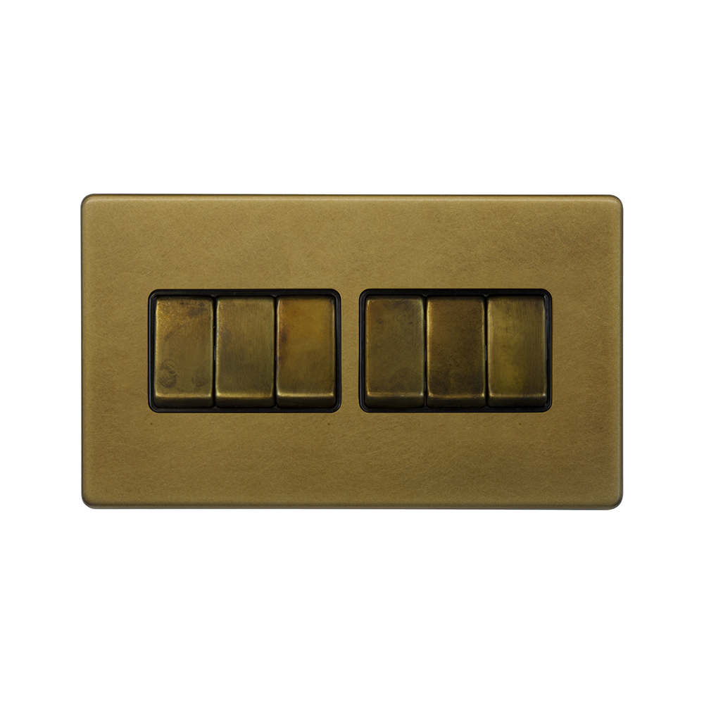 Soho Lighting Old Brass 10A 6 Gang 2 Way Switch