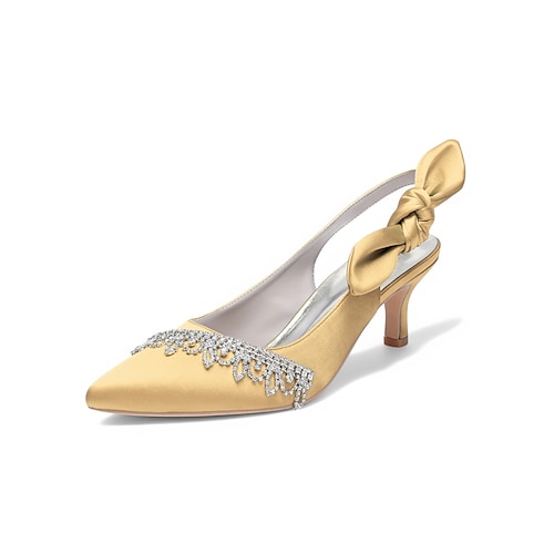 Scarpe con tacco a spillo da donna in raso color champagne con strass - eleganti tacchi a spillo a punta per cocktail party e occasioni formali