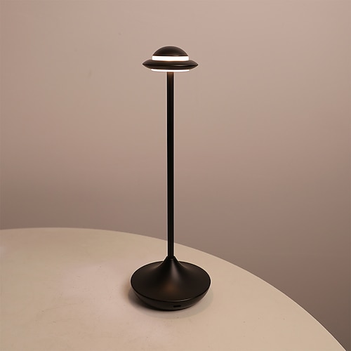 Lampada da scrivania ricaricabile in metallo a forma di ufo creativa con dimmerazione touch a tre colori per sala da pranzo, bar, soggiorno, studio, camera da letto, illuminazione d'atmosfera da