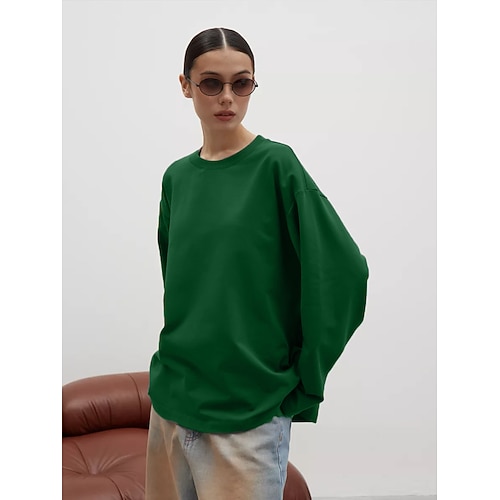 Per donna Camicia di cotone Tinta unica Elegante Classico Casual Manica Lunga Girocollo Top Regolari Quotidiano Uscire Weekend Nero Bianco Vino Verde scuro Marrone Primavera Autunno