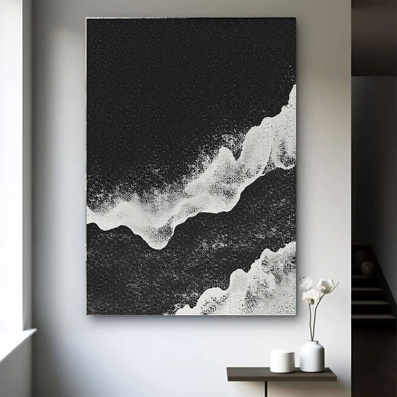 Set of 2 White Waves with Black Beach Painting Abstract Ocean Art on Canvas Handmade Vertical Seaside Wall Decor Heavy Texture Acrylic Art