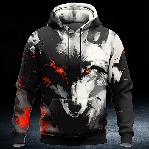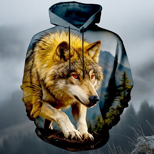 Per uomo Lupo Felpa con Cappuccio Felpa 3D Fantasia Girocollo All'aperto Abbigliamento casual alla moda Regalo Blu Rosso Verde Coulisse Autunno Inverno progettista S M L XL XXL XXXL