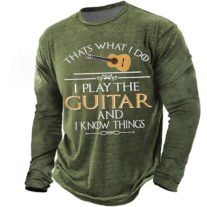 Mens Graphic Long Sleeve T Shirt Thats What I Do I Play The Guitar And I Know Things Vintage Army Green Musician Tee Clothing Apparel S M L XL XXL XXXL
