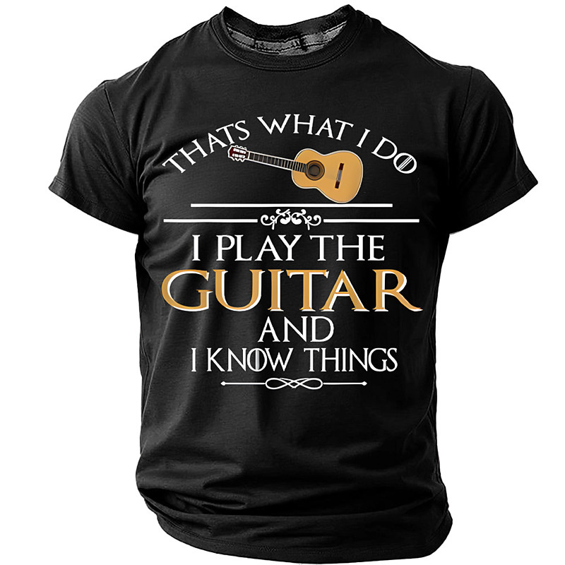 Thats What I Do I Play The Guitar And I Know Things Funny Slogan T-Shirt Mens Vintage Acoustic Guitarist Graphic Tee Humorous Musician Gift Tops Clothing Apparel S M L XL XXL XXXL