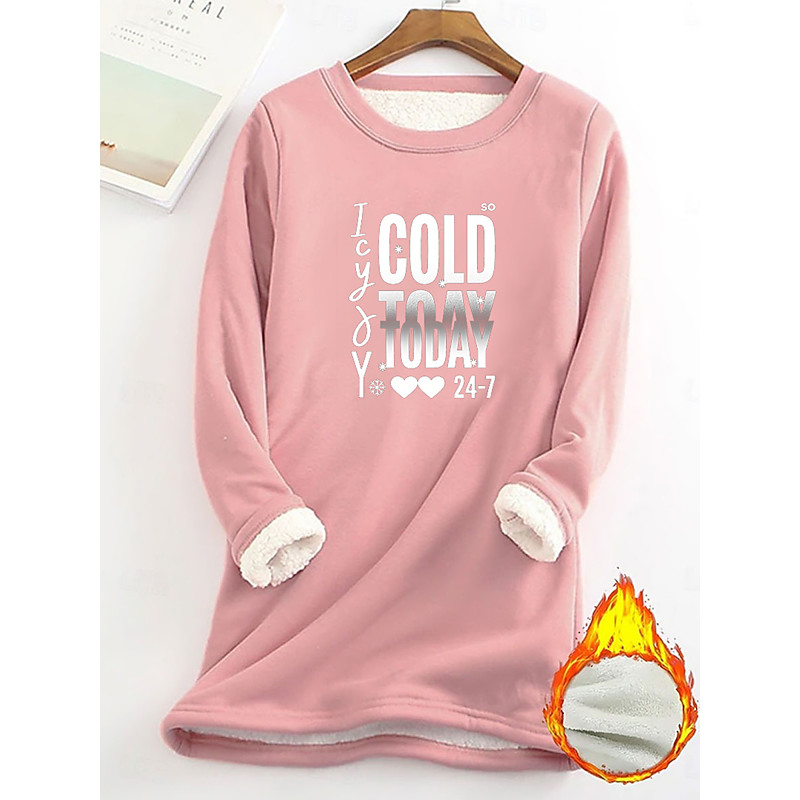 Women's Pullover Sweatshirt Graphic Letter Warm Casual Fuzzy Long Sleeve Crew Neck Round Neck Long Tops Street Casual Light Pink Black Dark Pink Blue Spring Fall Winter