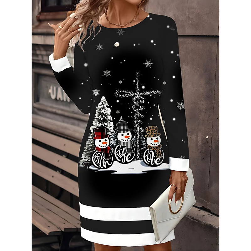 Christmas Women's Mini Dress T Shirt Dress Tee Dress Shift Dress Casual Daily Regular Fit Graphic Geometric Long Sleeve Crew Neck Black Yellow Red Blue Spring Fall Winter