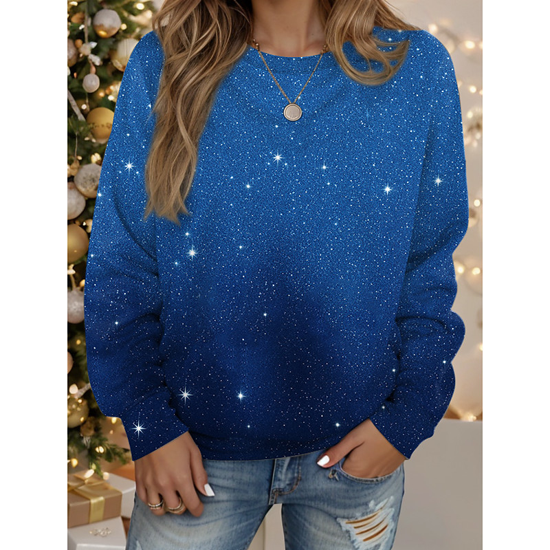 Women's Sequin Sparkly Party Glitter Plain Fashion Modern Casual Long Sleeve Crew Neck Regular Tops Daily Weekend Patchwork Mesh Black Wine Blue Fall Winter