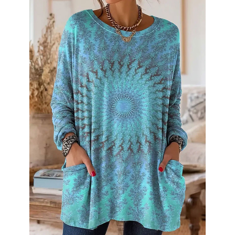 Women's T Shirt Ombre Graphic Vintage Fashion Stylish Long Sleeve Crew Neck Regular Tops Daily Going out Weekend Pocket Print Blue Pink Green Spring Fall Winter