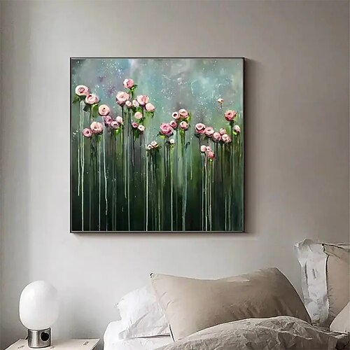 Handgemacht Hang-Ölgemälde Handgemalte Quadratisch Abstrakt Blumenmuster / Botanisch Klassisch Modern Ohne Innenrahmen (ohne Rahmen)