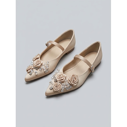 ballerine da damigella color champagne da donna - eleganti scarpe con tacco basso decorate con fiori per matrimoni in giardino