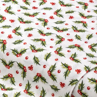 Tissu coton "houx et baies", blanc/coloré, série "Sina"
