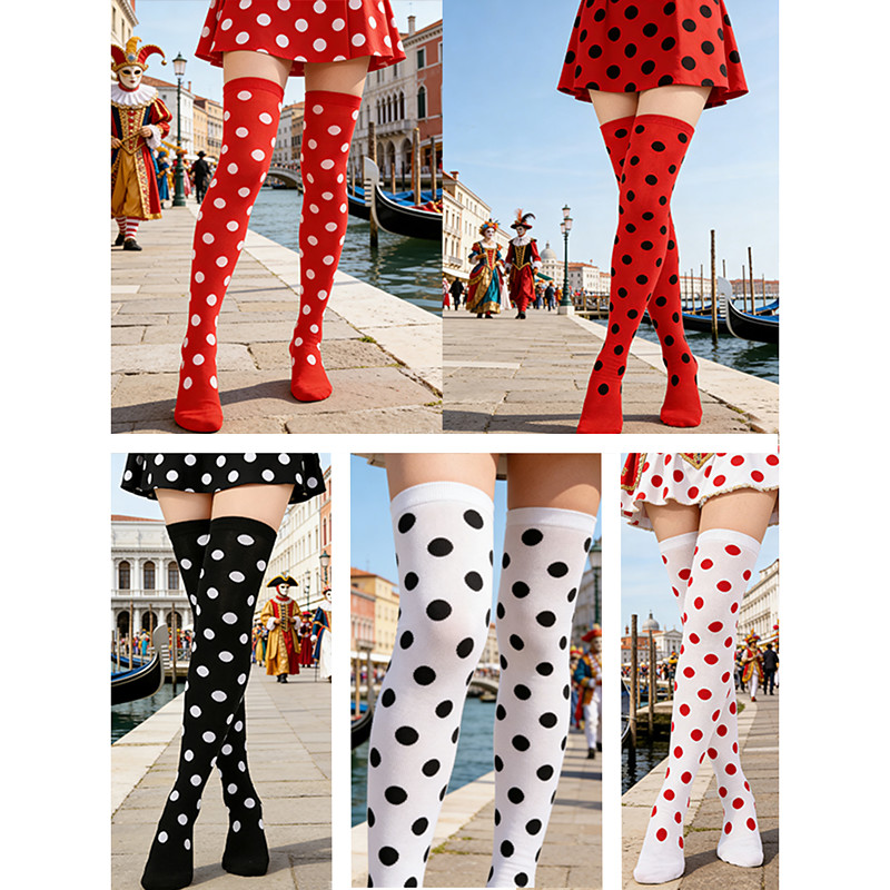 Women's 5-Pack Polka Dot Over-the-Knee Socks, Colorful Carnival Costume Stockings, Stretchy Retro Party Hosiery for Festivals Masquerade Celebrations