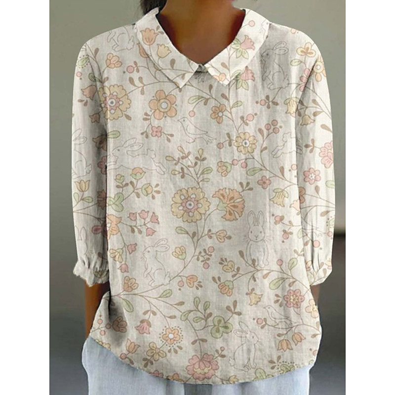 Women's Shirt Linen-Inspired Shirts Long Sleeve Shirt Collar Yellow Pink Purple Spring Fall