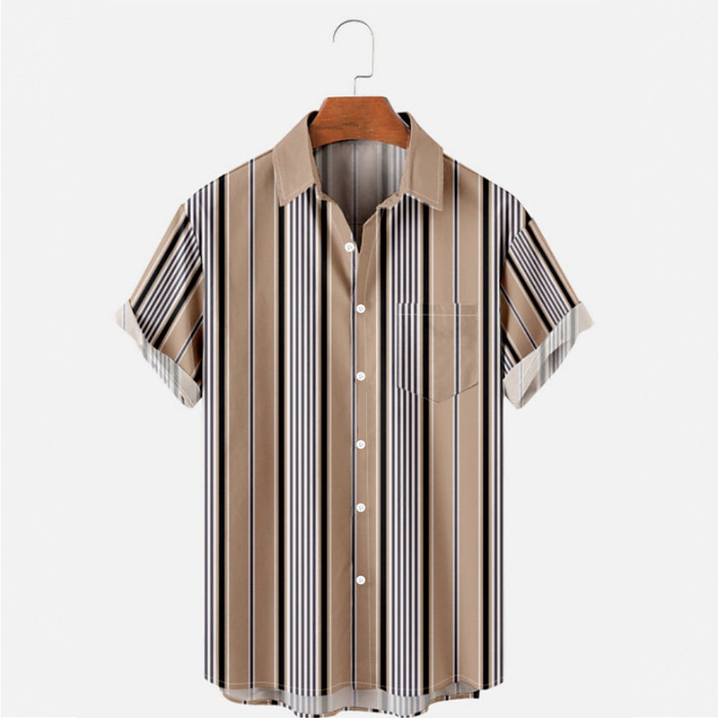 Men's Striped Casual Shirt Button Up Shirt Short Sleeve Business Casual Causal Casual Summer Spring Turndown Button Up Pocket Beige