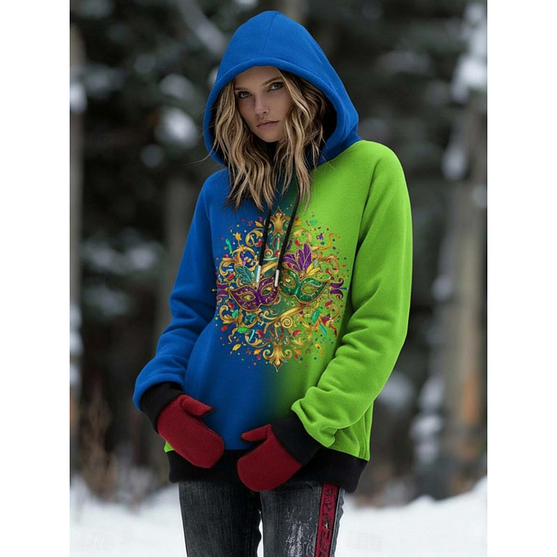 Carnival Women's Pullover Hoodies Graphic Vintage Casual Long Sleeve Hooded Regular Tops Casual Dailywear Drawstring Print Green Spring Fall Winter