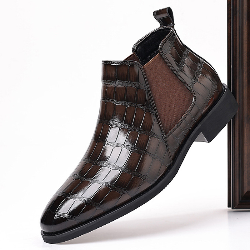 Men's Brown Crocodile Pattern Chelsea Boots – Slip-On Faux Leather Ankle Dress Boots for Business, Formal Events and Daily Wear