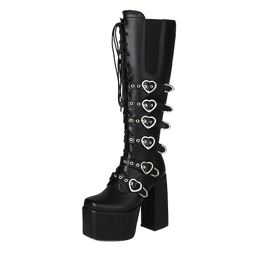 stivali alti fino al ginocchio con plateau neri da donna - scarpe gotiche con tacco spesso per le feste notturne