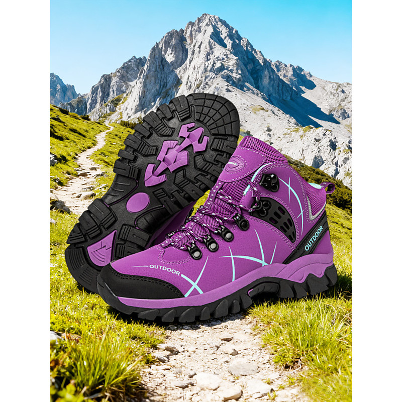 Women's Purple Hiking Boots – Non-Slip Outdoor Trekking Shoes Lace-Up Ankle Boots for Climbing, Camping Mountain Trips