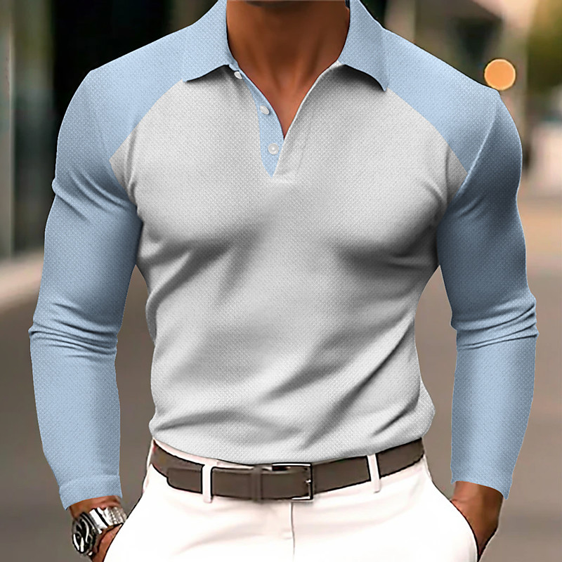 Men's Color Block Polo Long Sleeve Polo Shirts Lapel Business Casual Athleisure Daily Wear 3D Print Buttons Spring Fall Blue Blue 1 Blue 2#