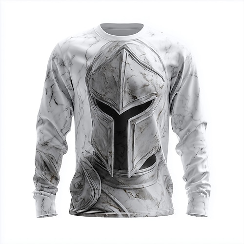 Herren Optische Täuschung Tempelritter T Shirt Langarm T-Shirt 3D-Druck Rundhalsausschnitt Hemd Mode Übertrieben 3D Straße Täglich Weiß Weiß 2 Sommer Frühling Herbst Bekleidung S M L XL XXL XXXL