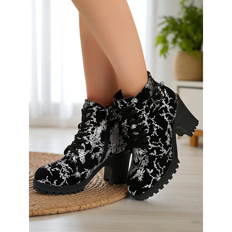 Women's Vintage Floral Print Ankle Boots with Pointed Toe and Stiletto Heel Elegant High Heel Booties for Formal Events and Parties