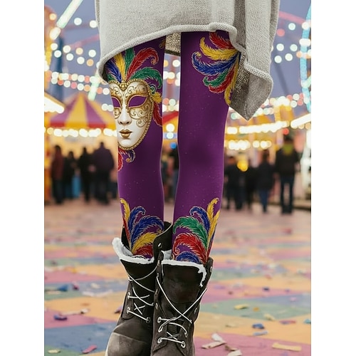 Karnevals-Leggings für Damen, bequeme Leggings im Vintage- und Ethno-Stil, lange Hose mit hohem Bund, Grafikprint, bequem, dehnbar, lässig, für den Alltag, Urlaub, blau, marineblau, lila, grün,