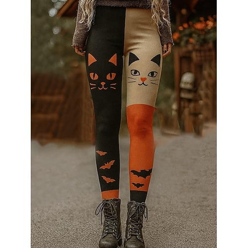 Damen Leggings Urlaub Vintage Mode Voll Länge Hoch Taille Grafik Monster Druck Weich Atmungsaktiv Hohe Elastizität Outdoor Urlaub Straße Violett Dunkelgrau Orange Frühling Herbst Winter Schlanke