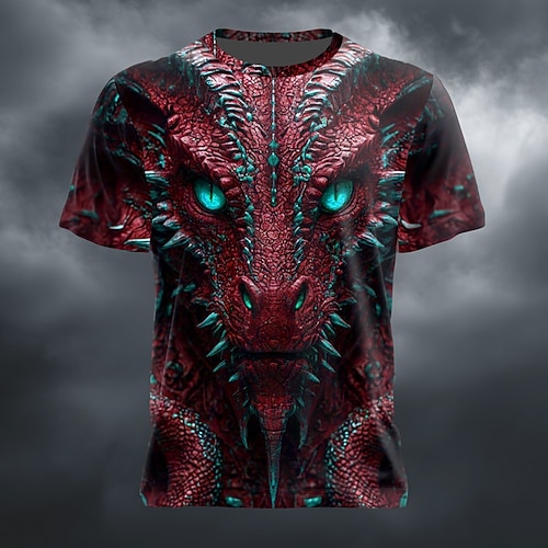 Herren Tiermotiv Drache 3D T Shirt Kurzarm T-Shirt 3D-Druck Rundhalsausschnitt Hemd Übertrieben Designer Party Ferien Blau Rote Purpur Sommer Frühling Bekleidung S M L XL XXL XXXL