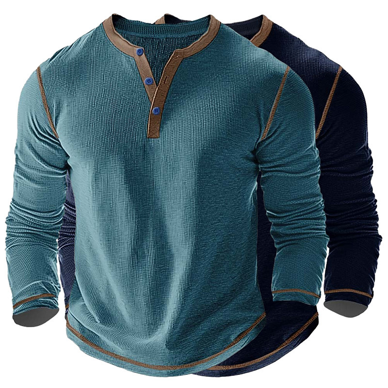 Men's T Shirt Henley Shirt Waffle Knit Tee Tee Top Long Sleeve Shirt Long Sleeve Color Block Solid Fashion Designer Basic 2 Piece Multi-pack Henley Vacation Street Casual Spring Fall All Seasons 1
